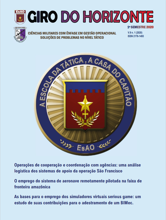 A Revista Giro do Horizonte (GH) é um periódico de natureza acadêmico-profissional destinado a realizar a divulgação de trabalhos científicos produzidos na Escola de Aperfeiçoamento de Oficiais (EsAO) na área das Ciências Militares com escopo no ambiente tático-operacional. A revista também acolhe a contribuição de colaboradores externos vinculados ou não à outras instituições conforme o previsto nas instruções aos autores.