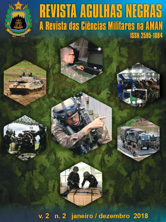 v. 2 n. 2 (2018)A Revista Agulhas Negras é uma publicação anual do Programa de Graduação em Ciências Militares da Academia Militar das Agulhas Negras (AMAN), de natureza acadêmica, sem fins lucrativos. Por ser multidisciplinar, tem por objetivo a divulgação de trabalhos cujo escopo é o desenvolvimento, implementação e/ou aperfeiçoamento da Doutrina Militar Terrestre nas áreas Operacional, Informacional e Humana nas linhas de Defesa, Segurança, Educação, Comportamento e Administração.